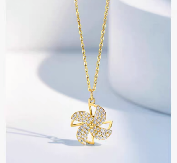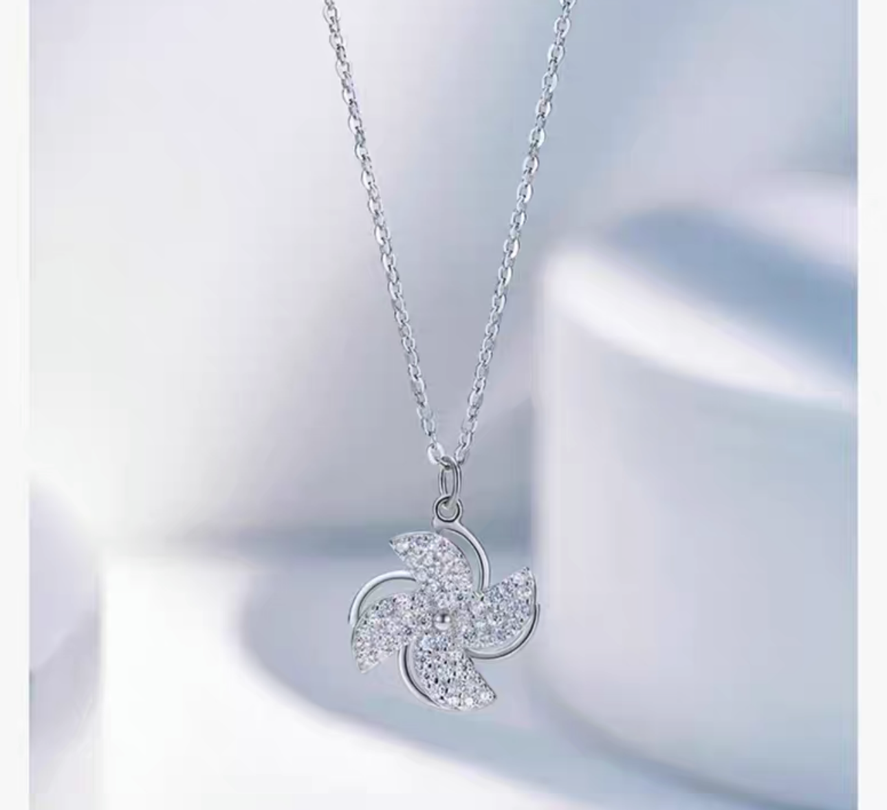 925 Sterling Silver Spinning Windmill Necklace – a light luxury piece designed with a refined, unique look. This trendy clavicle necklace for women combines elegance with a sense of sophistication, perfect for summer wear.