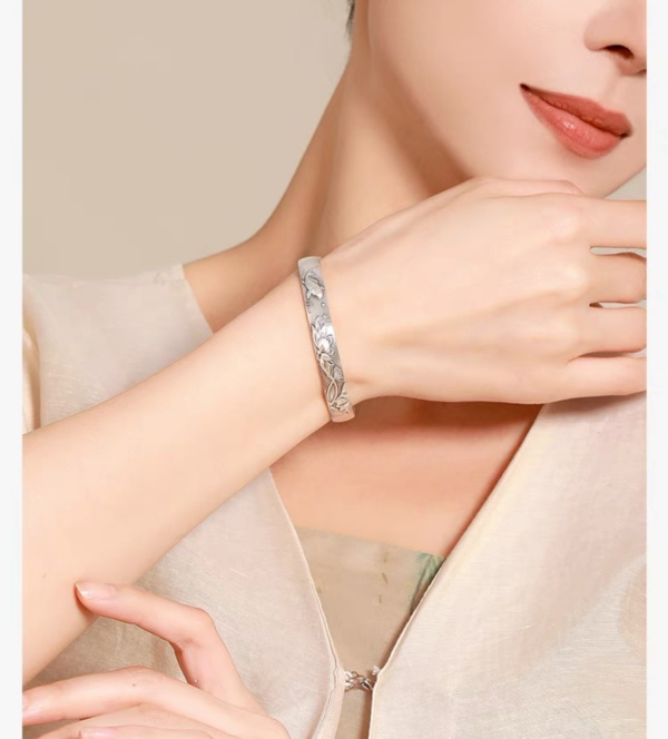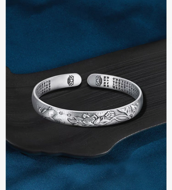Be the first to review “Classic Lotus Heart Sutra and Great Compassion Mantra Bracelet – a vintage-style, convex lotus flower bangle for women, featuring an aged finish and open cuff design, inspired by Miao and Thai craftsmanship.” Cancel reply