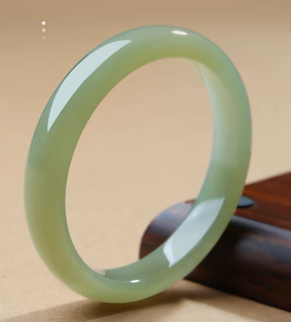 Be the first to review “Natural Hetian Jade Bangle for Women – featuring a light green, icy translucent quality with a youthful appeal, crafted from Qingshui jade in soft, pale green tones.” Cancel reply