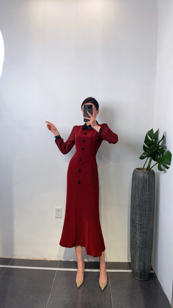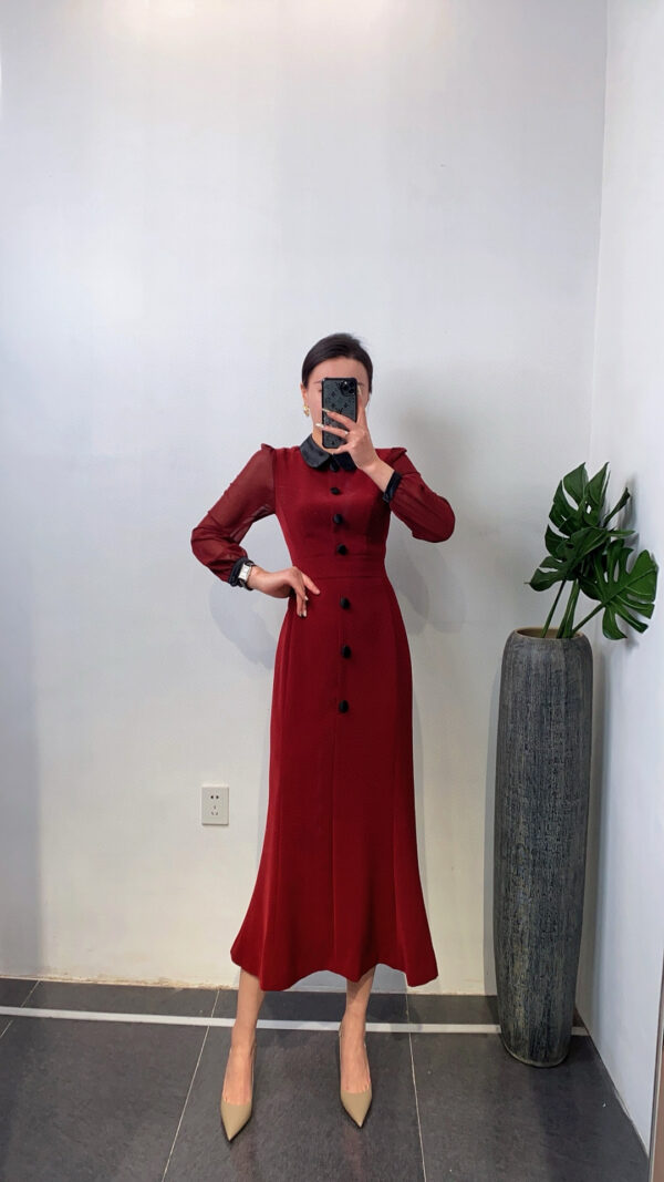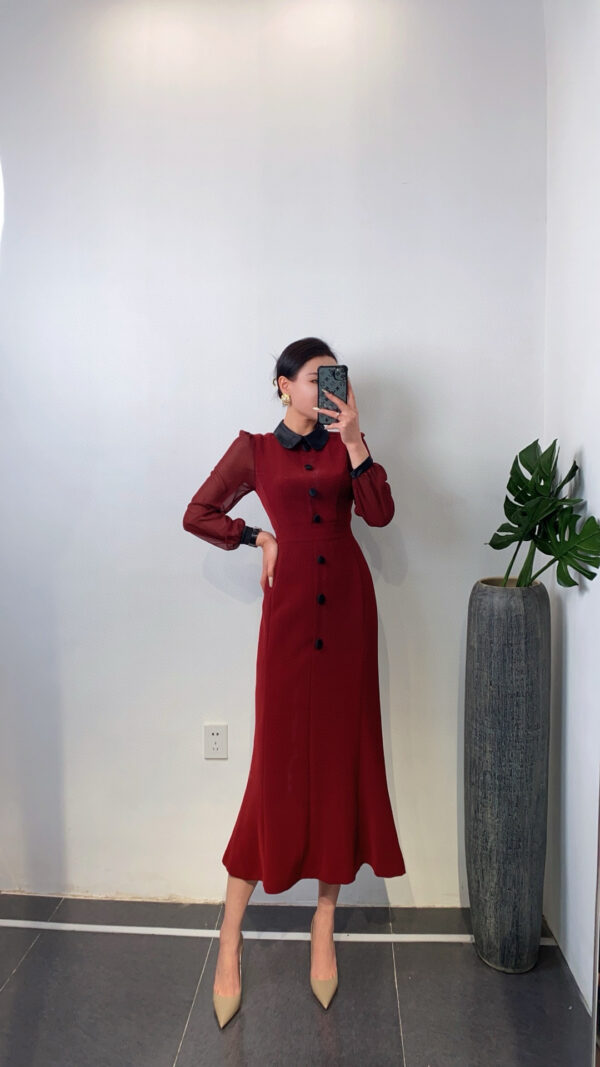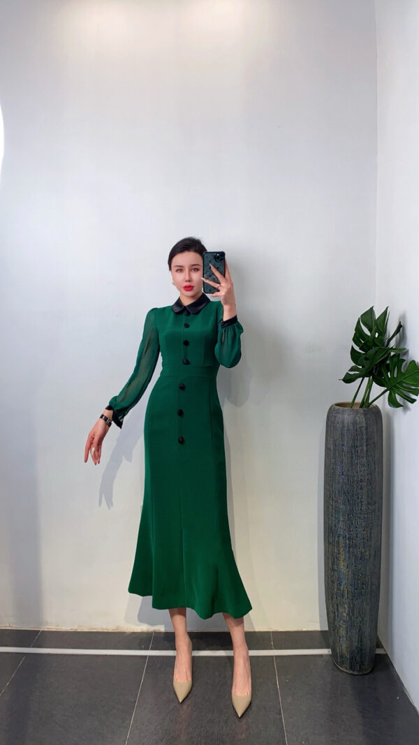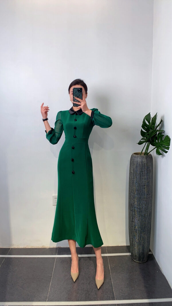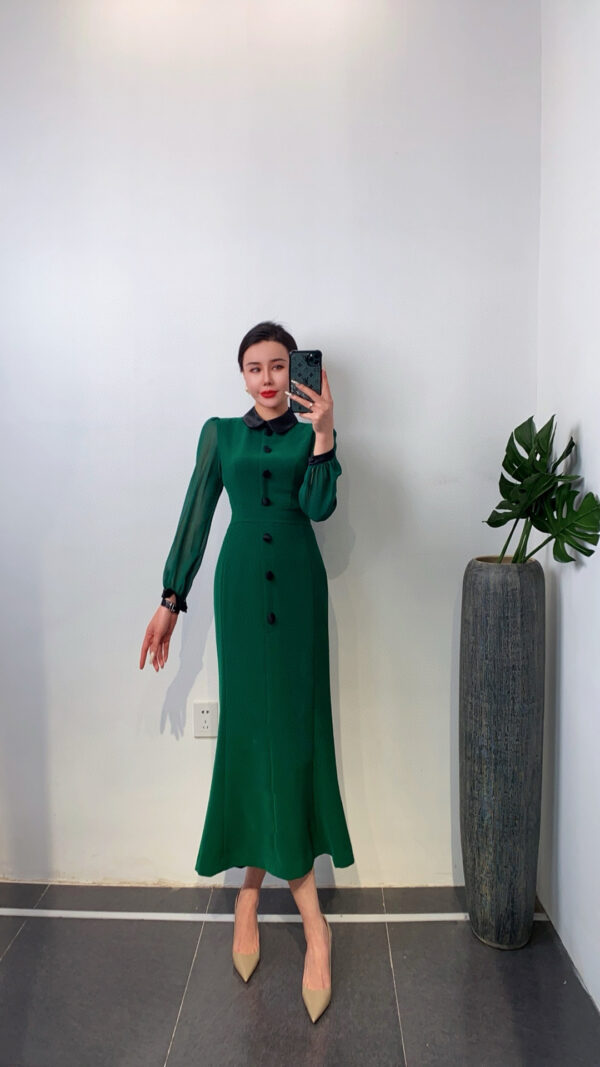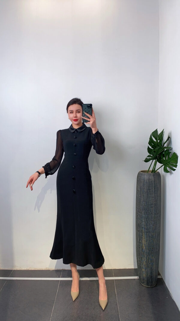 New socialite-style acetic acid doll collar, spliced Hepburn style fishtail hem dress for women.