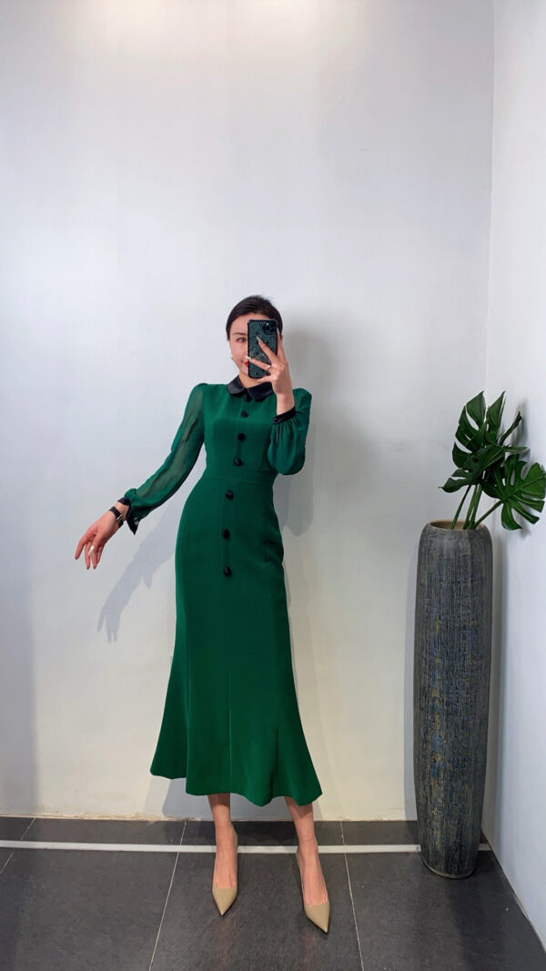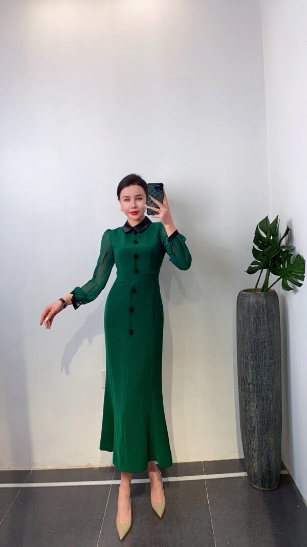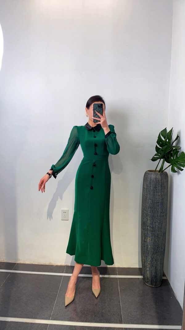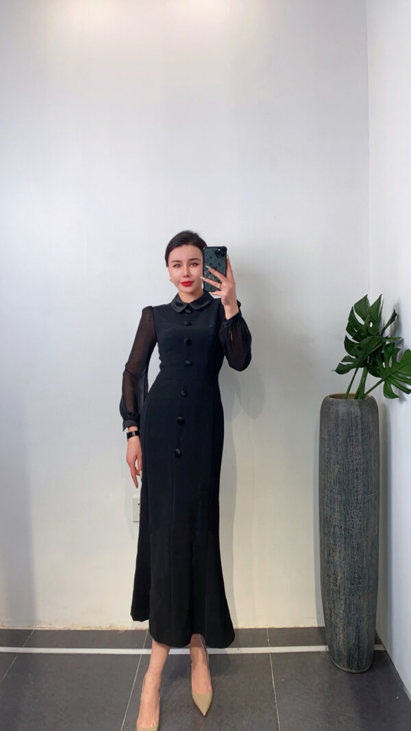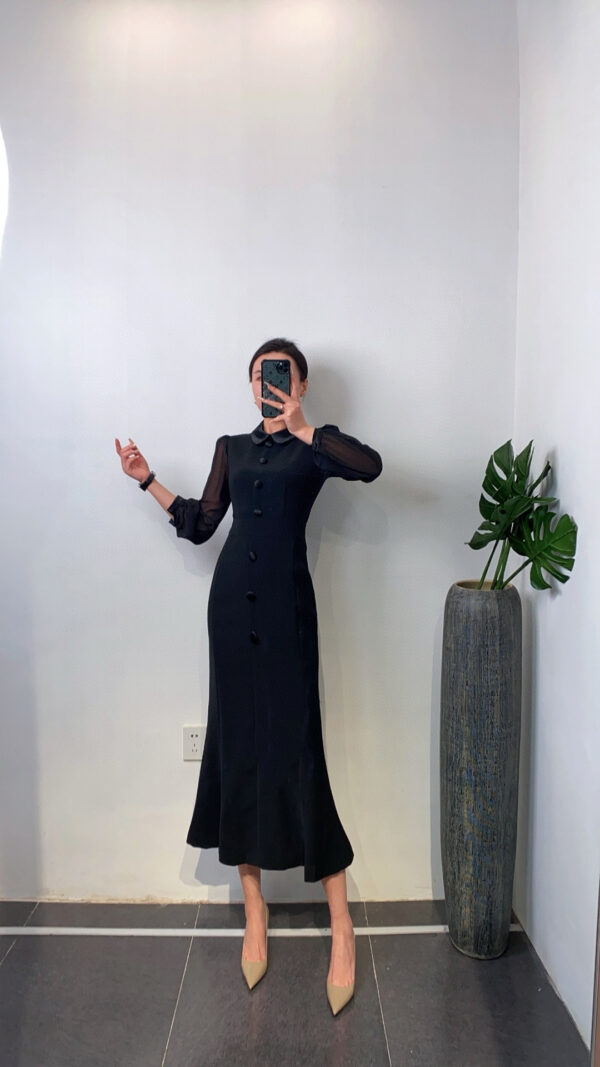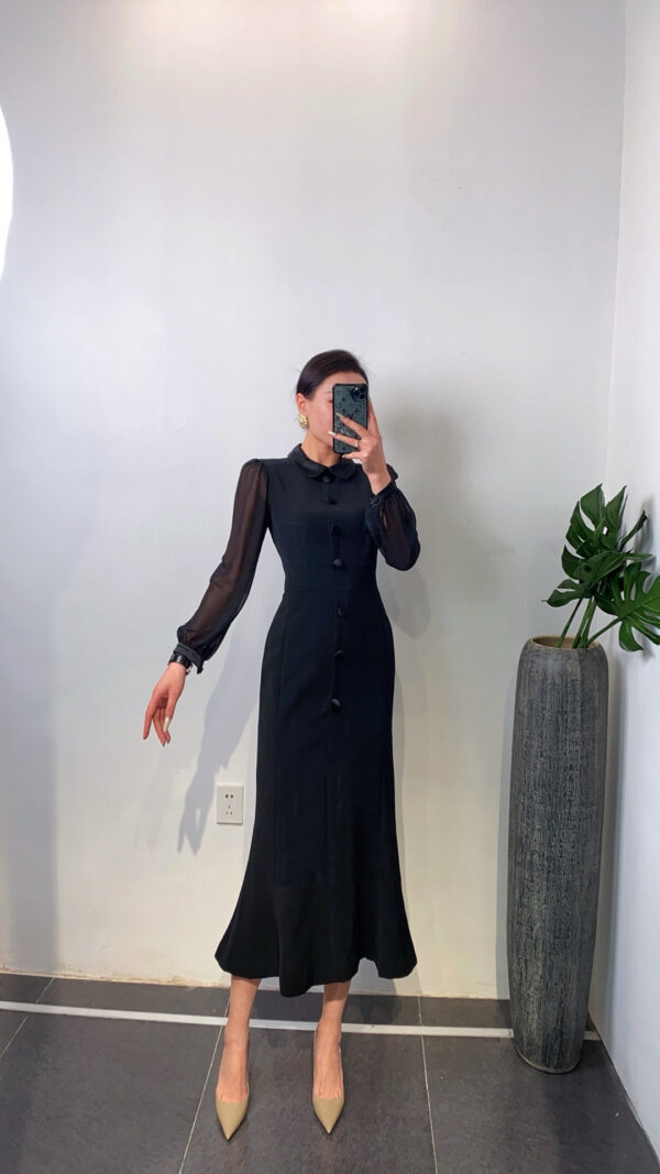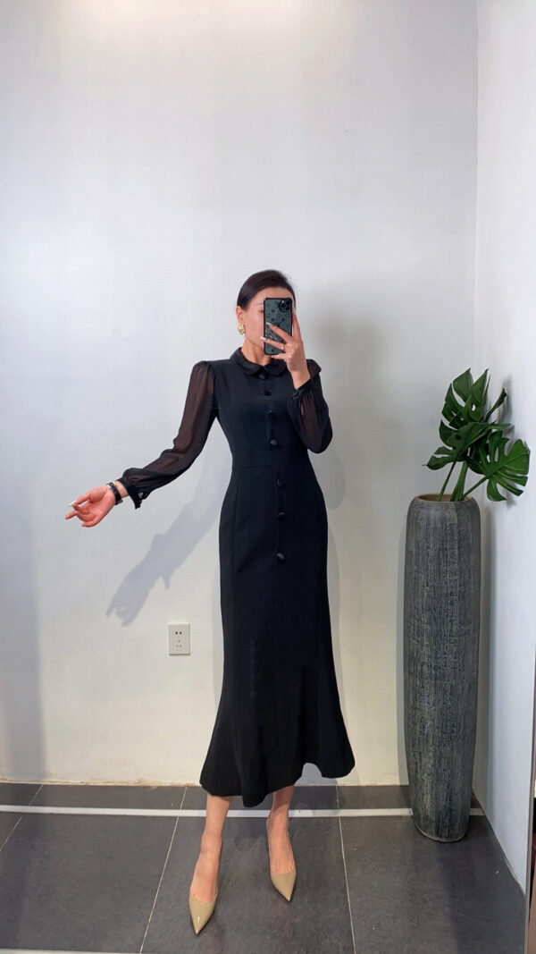 Be the first to review “New socialite-style acetic acid doll collar, spliced Hepburn style fishtail hem dress for women.” Cancel reply
