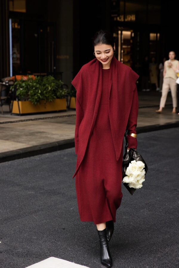Be the first to review “New all-wool loose-fitting dress for women, knitted, with a relaxed, stylish vibe. Suitable for fuller figures, long dress paired with a shawl.” Cancel reply