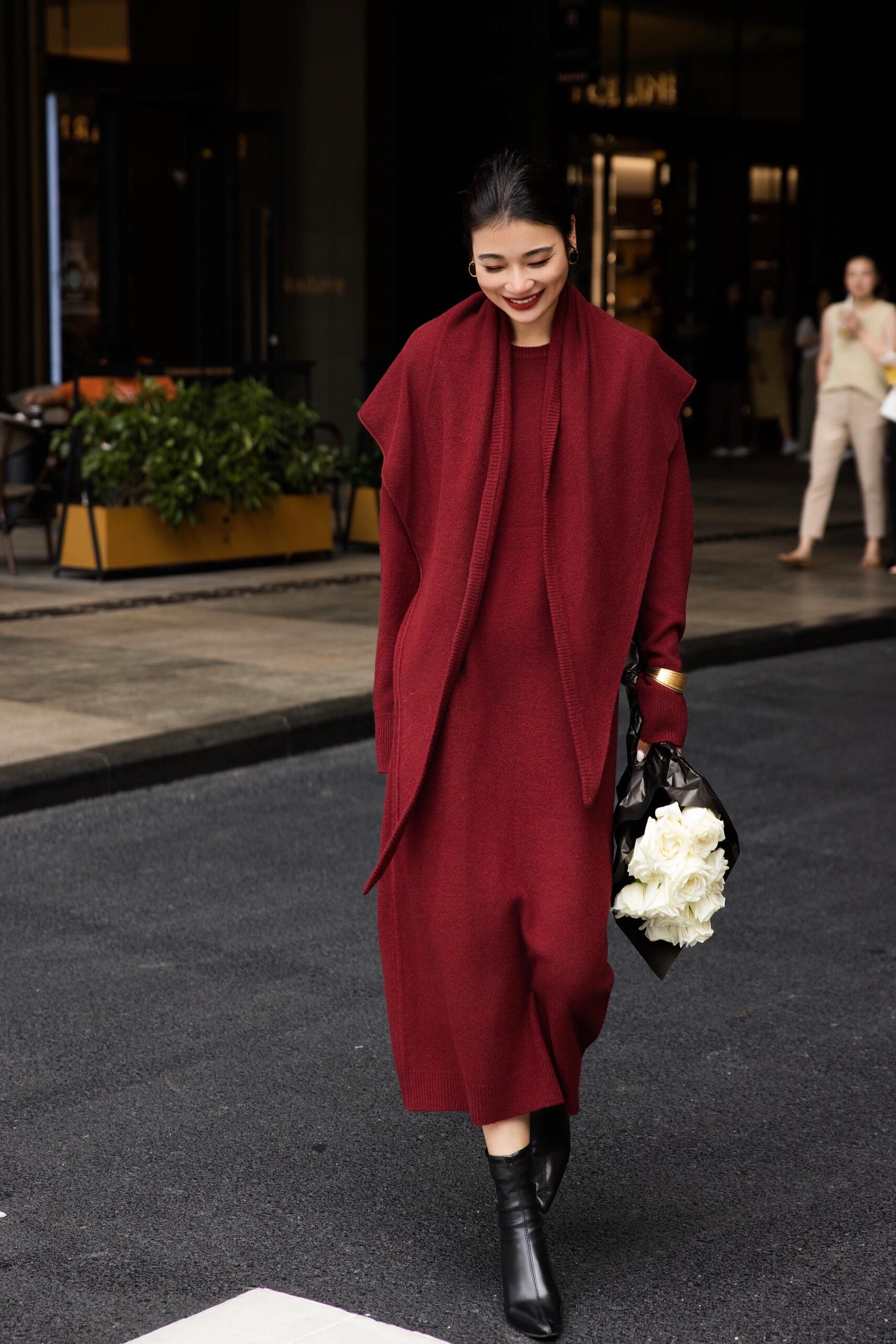 New all-wool loose-fitting dress for women, knitted, with a relaxed, stylish vibe. Suitable for fuller figures, long dress paired with a shawl.