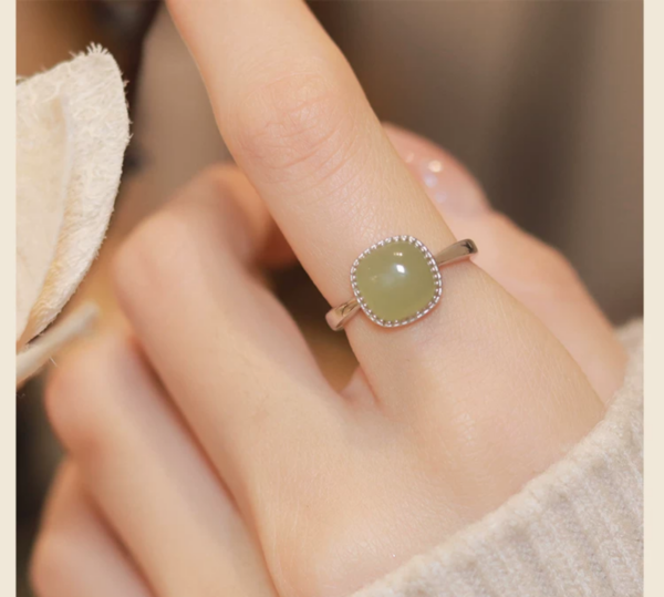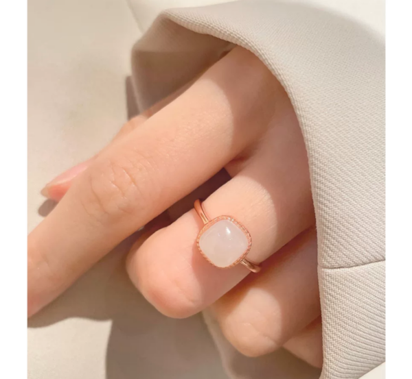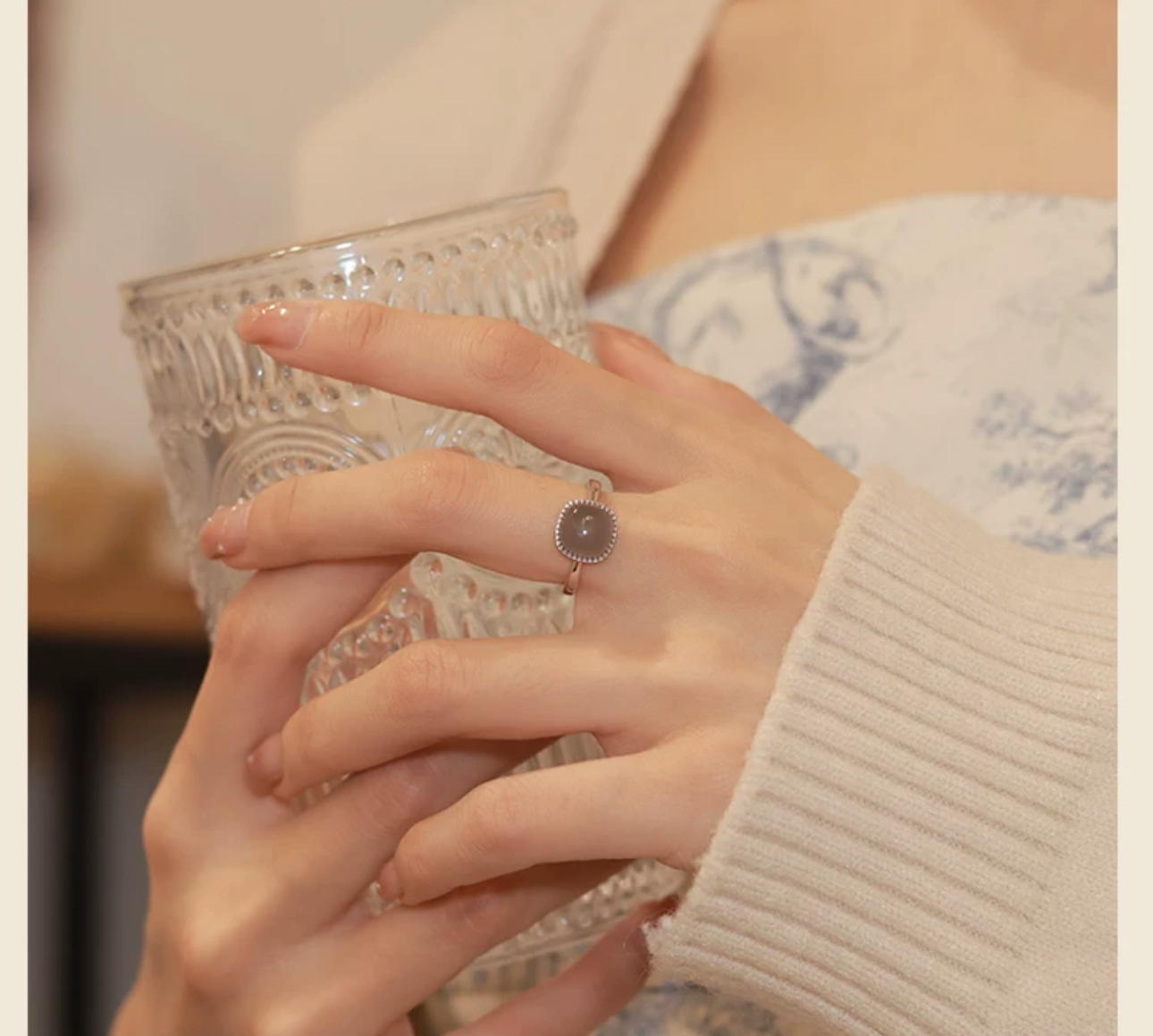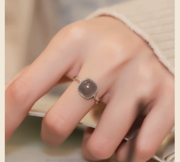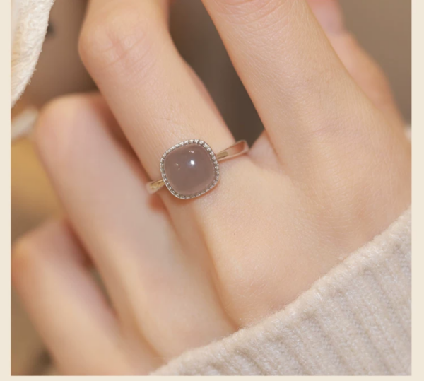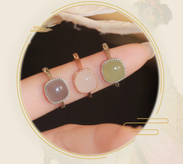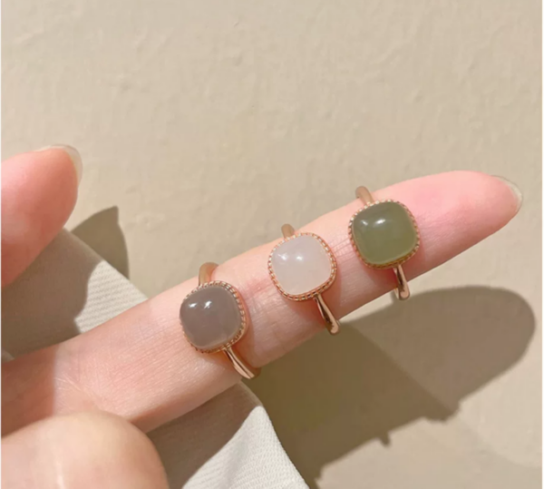 Fashionable bestseller, Hetian jade small square candy ring for women, smoky purple synthetic jade, index finger ring, gold color, niche design.