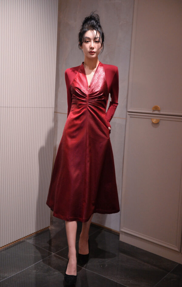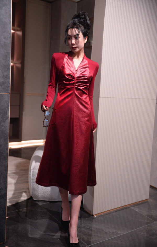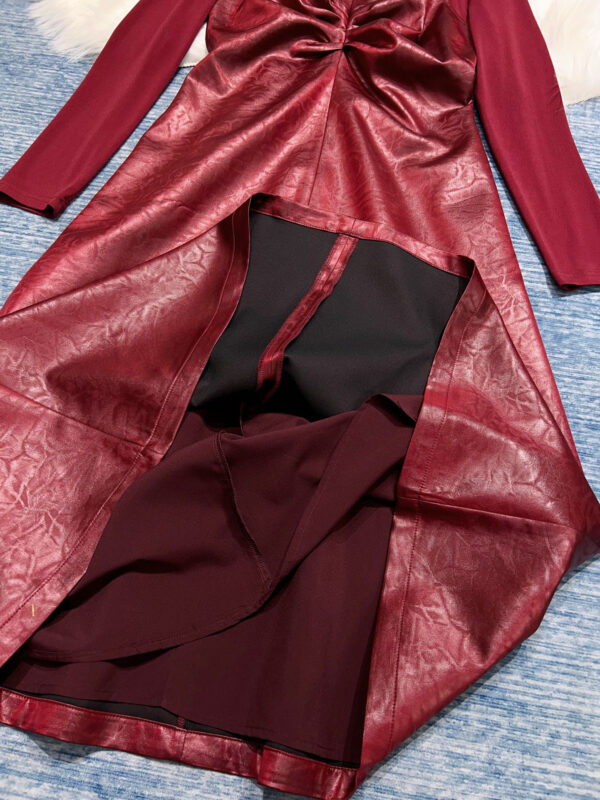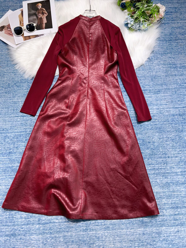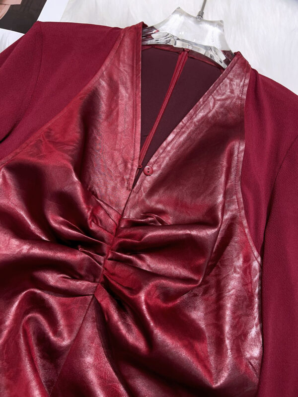 Be the first to review “Fashionable bestseller, new high-end slim-fitting, figure-flattering, elegant and affordable V-neck PU spliced dress for women.” Cancel reply