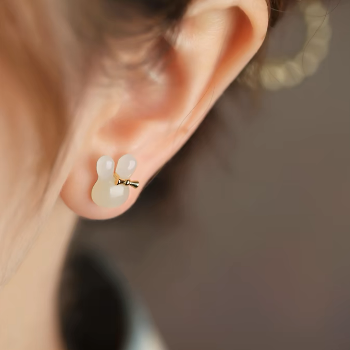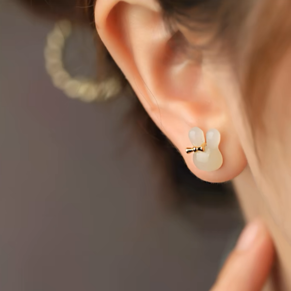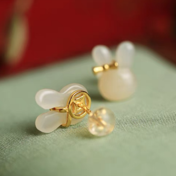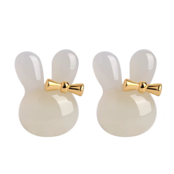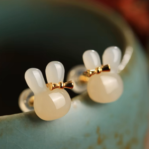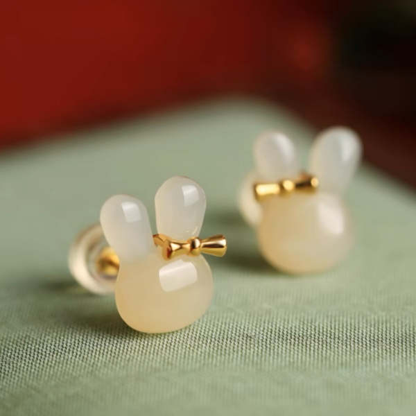 Jade Rabbit natural Hetian jade sterling silver rabbit stud earrings for women, new Chinese-style jade gemstone with gold inlay, earrings, gift. quantity