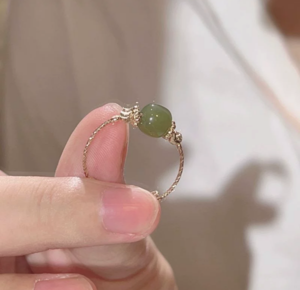 Lucky popular Qingke Hetian jade carved flower charm ring for women, Chinese vintage style, finger ring.