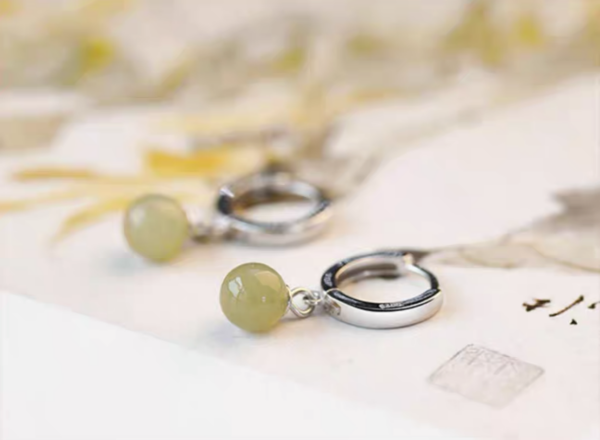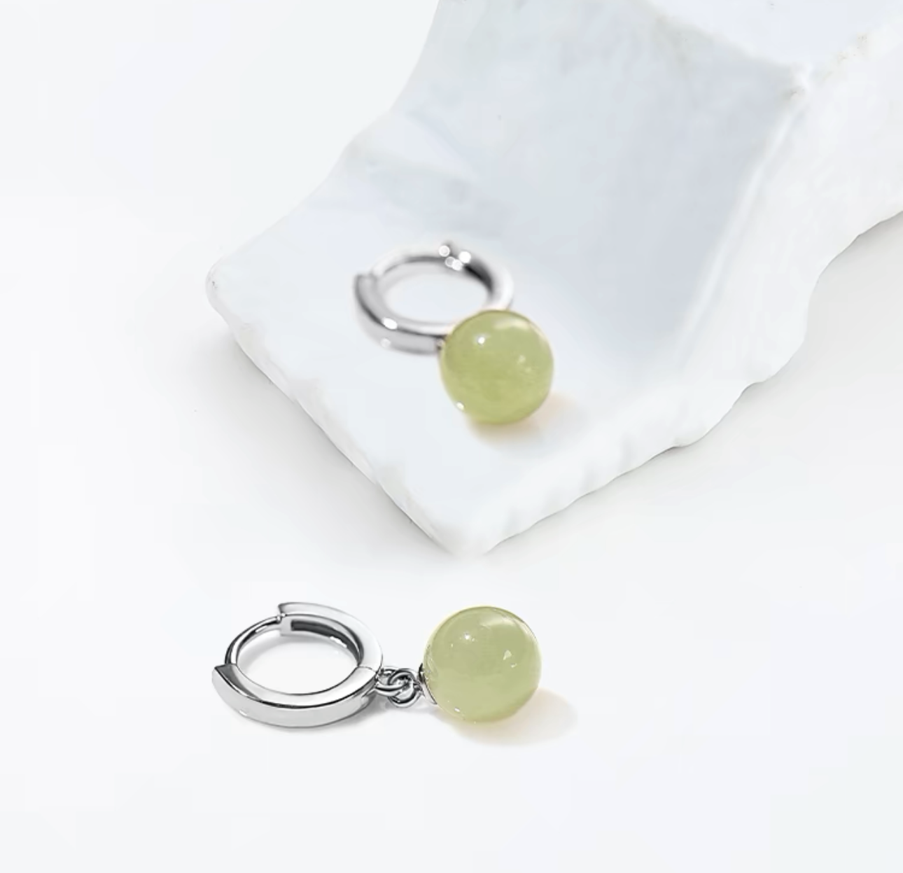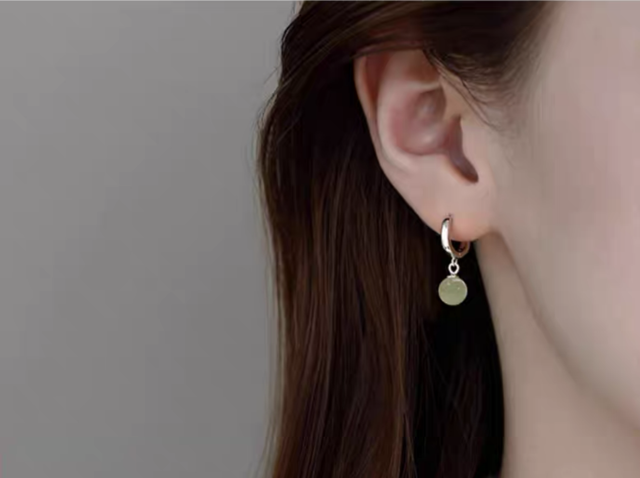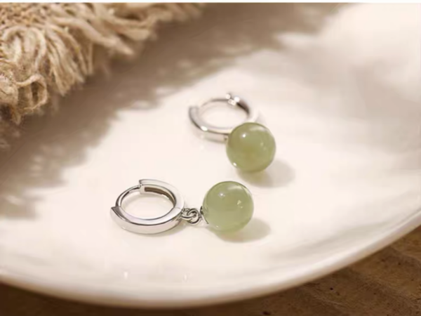 Natural Hetian Jade Earrings – New Trendy High-Quality Jade Studs, Metaphysical Design, Ice-Grade Jadeite Drop Earrings in Sterling Silver