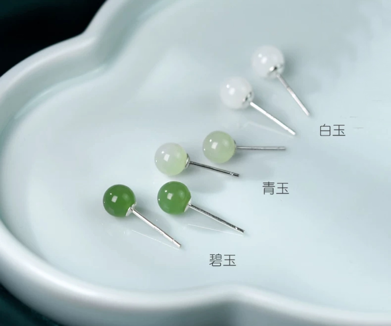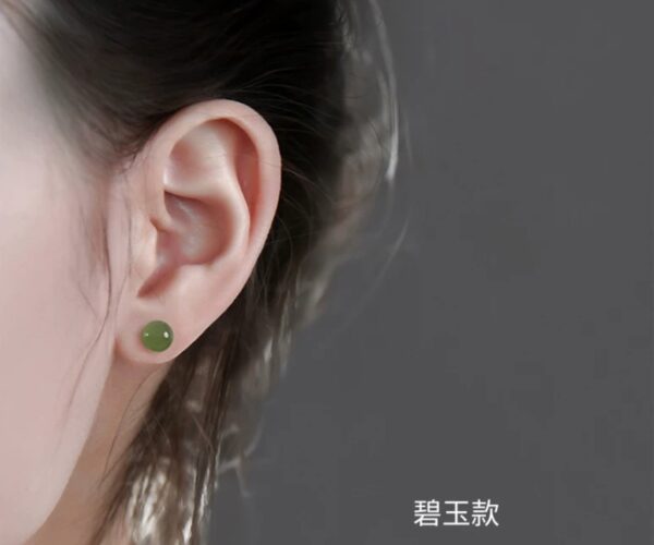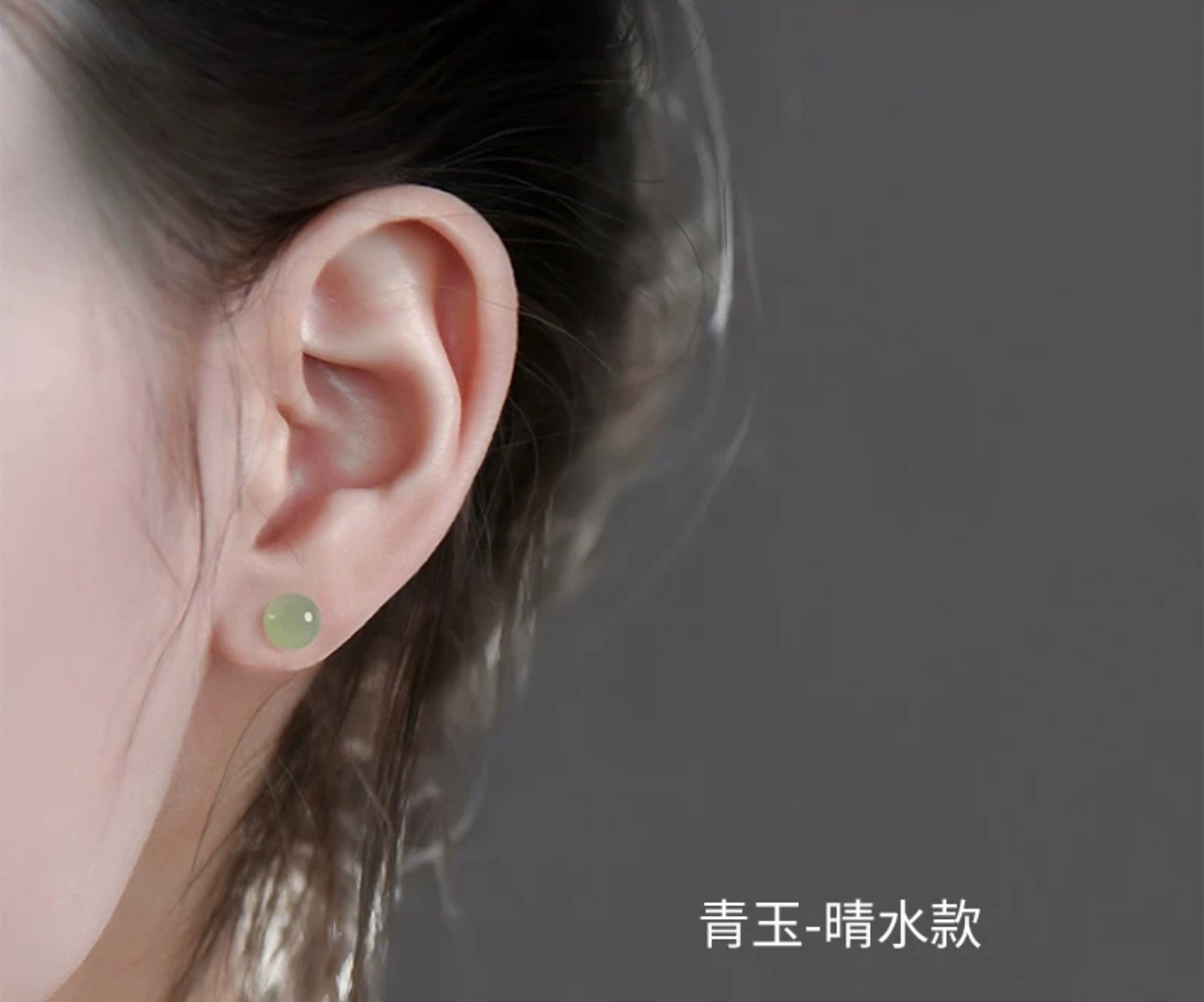 Natural Hetian jade stud earrings for women and men, sterling silver, niche design with a high-end, elegant vibe, new bestseller.