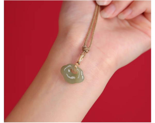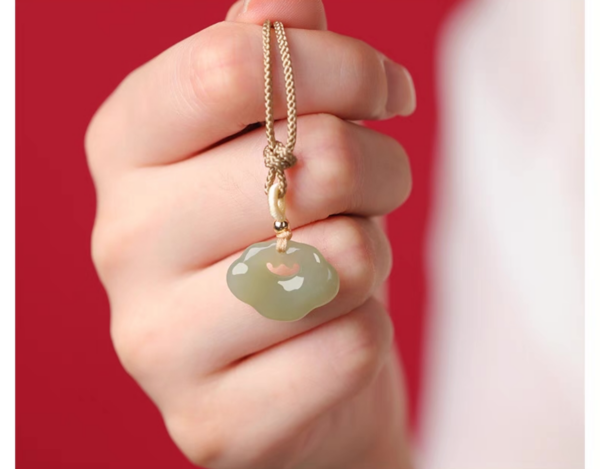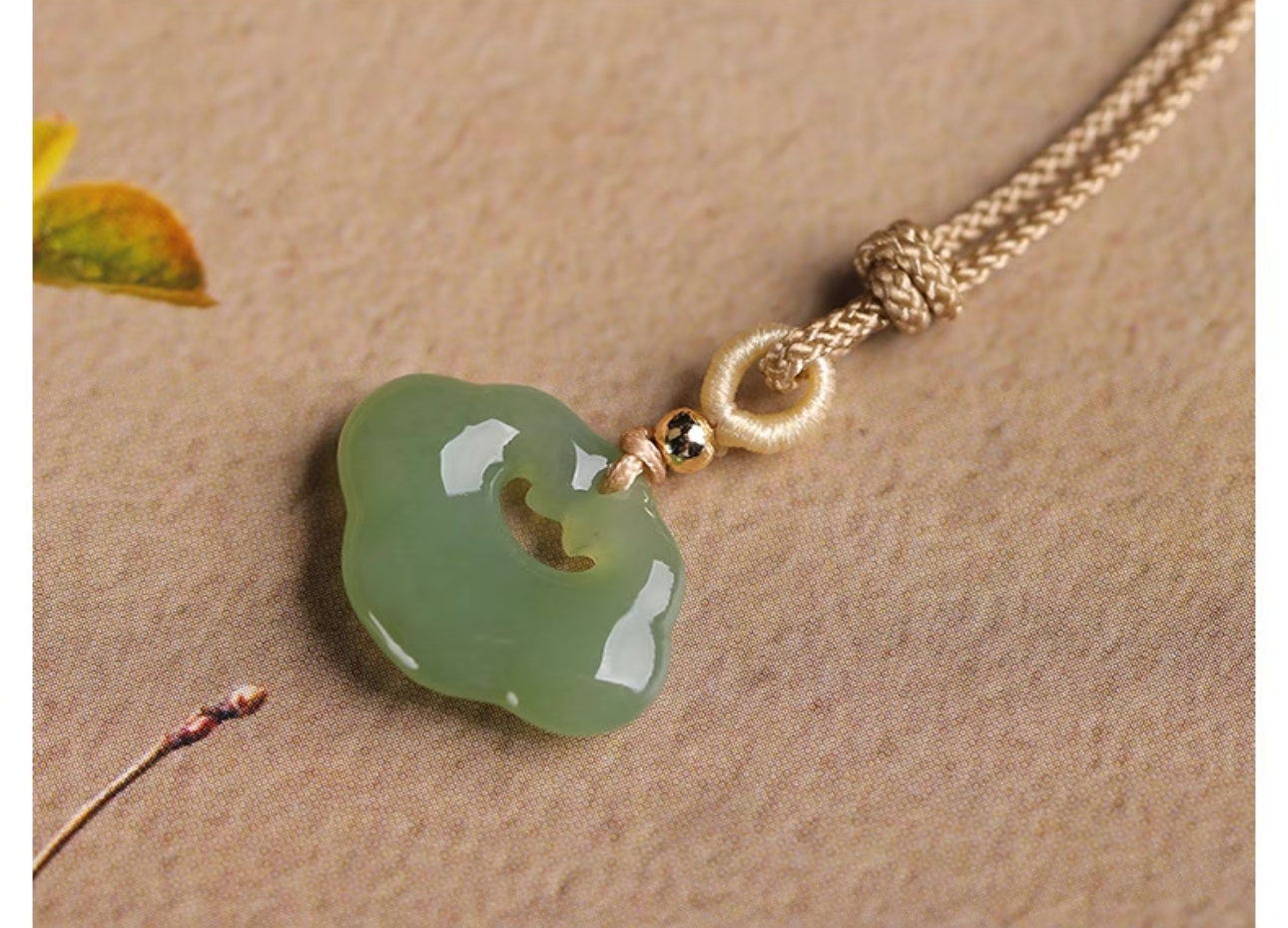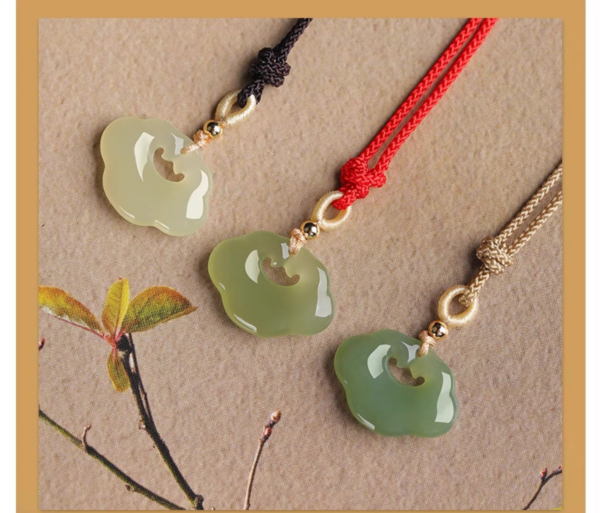 Natural Hetian Jade Longevity Lock Pendant – Protective Amulet for Good Fortune, Birth Year Safety Lock, Jade Pendant for Women