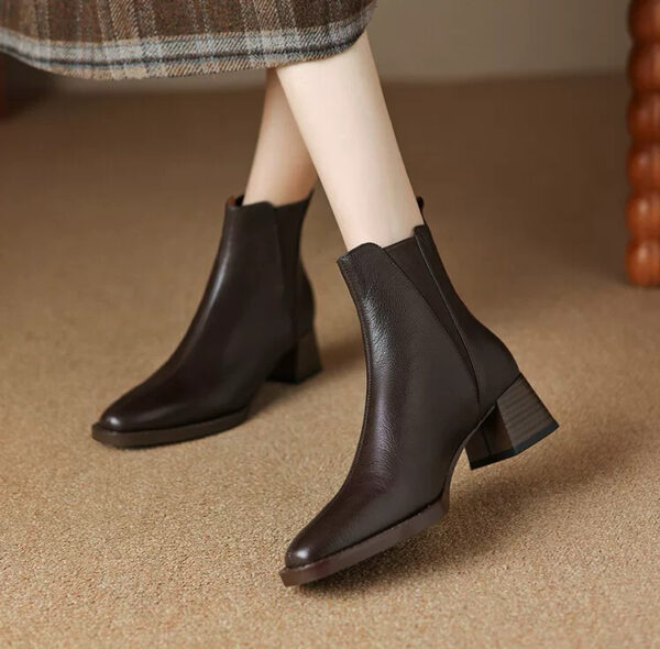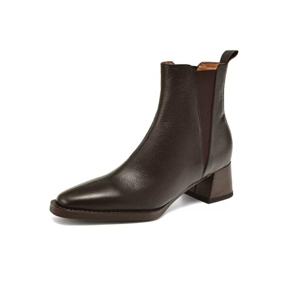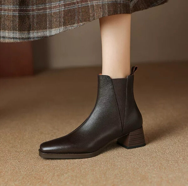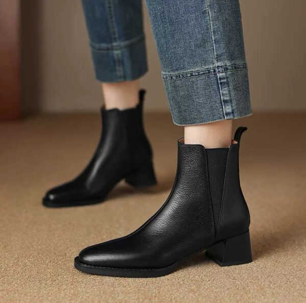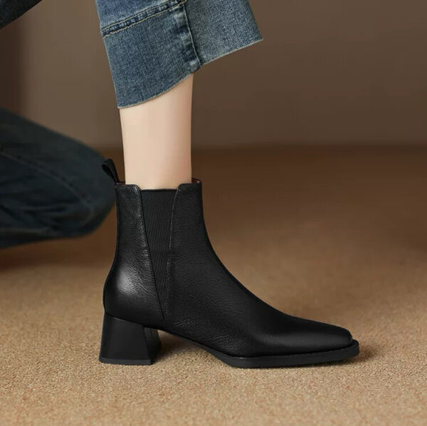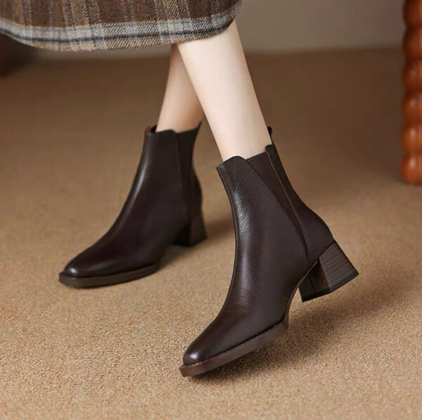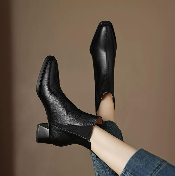 Soft lambskin chunky-heeled Chelsea boots for women, new winter collection, vintage square-toe ankle boots, spring and autumn mid-heel boots.