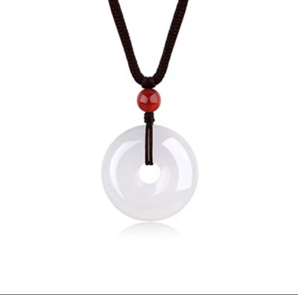 Mujue White Hetian Jade Pendant – a natural jade Peace Buckle pendant, suitable for both men and women. This jade amulet, also ideal as a couple’s accessory, features a soft, lustrous white finish typical of Hetian jade.