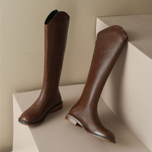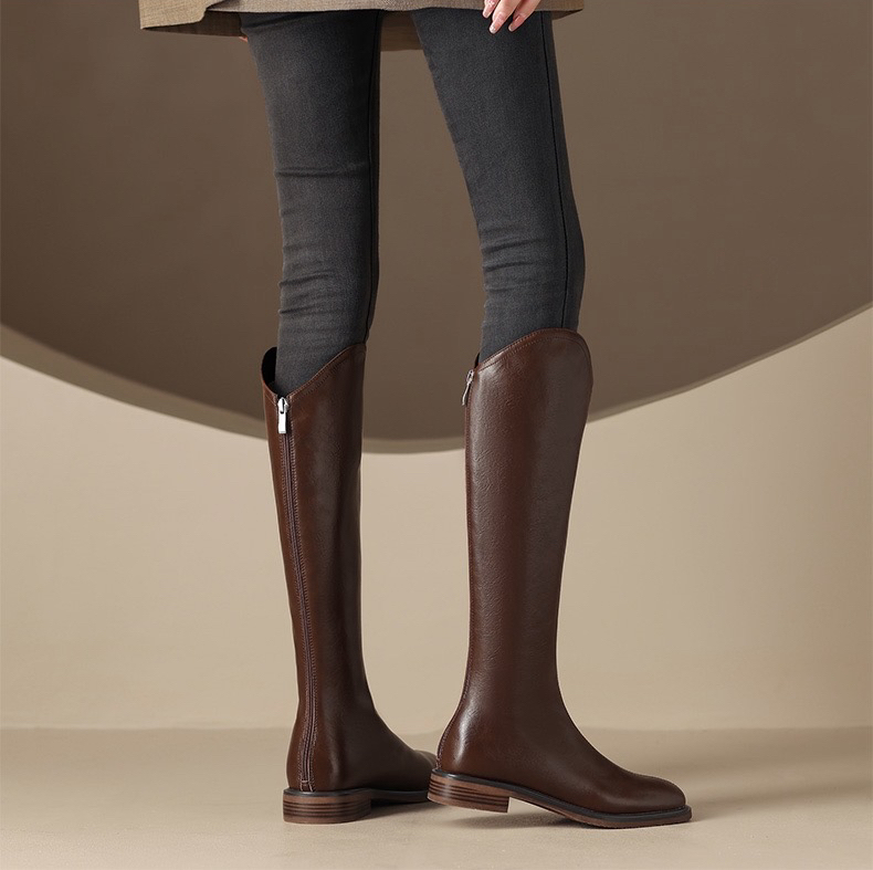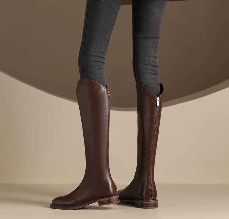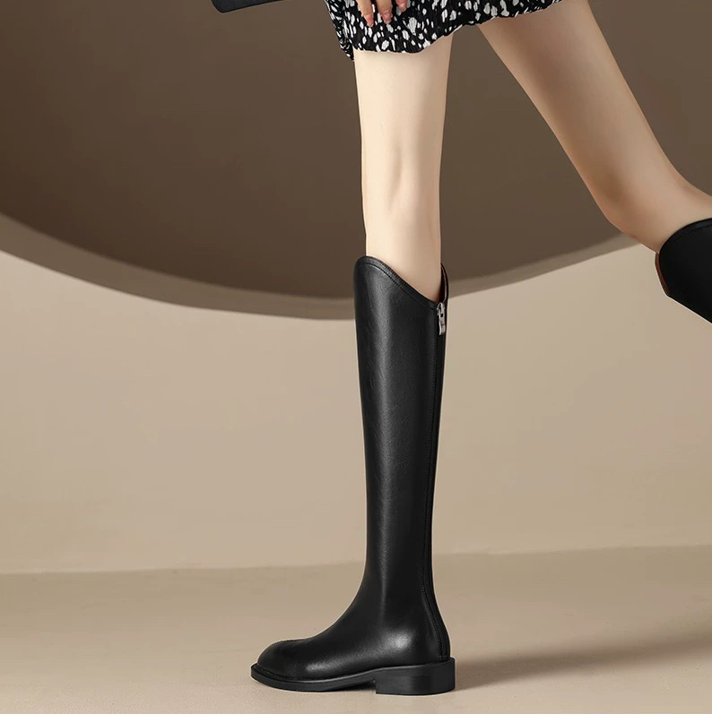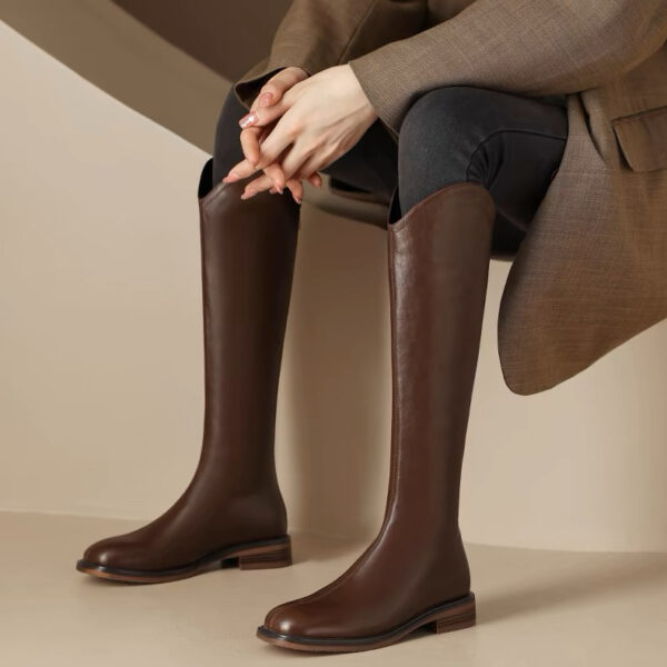V-shaped long boots for women, low-heeled genuine leather, slimming autumn and winter over-the-knee knee-high riding boots, flat western-style boots. quantity