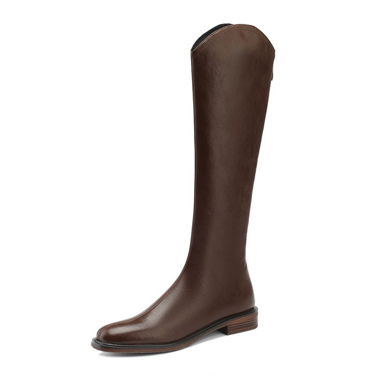 V-shaped long boots for women, low-heeled genuine leather, slimming autumn and winter over-the-knee knee-high riding boots, flat western-style boots.